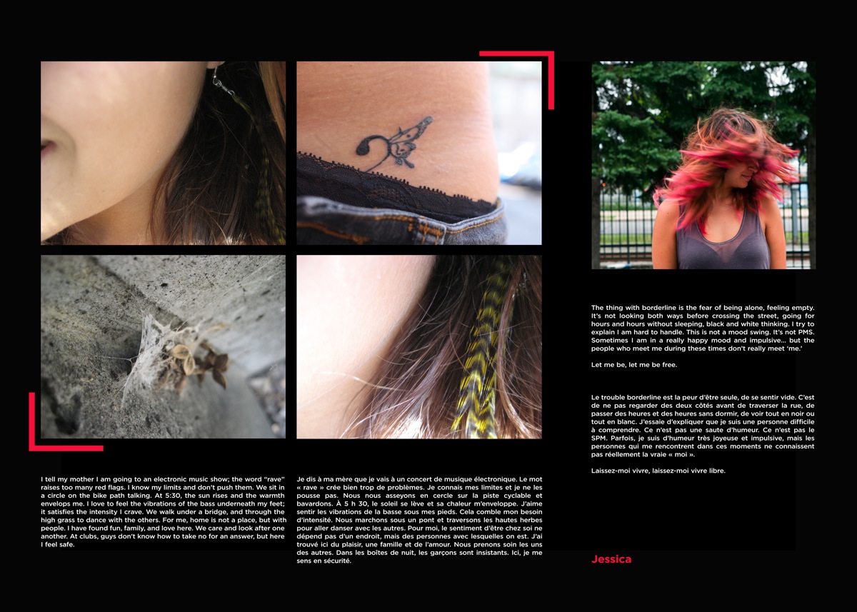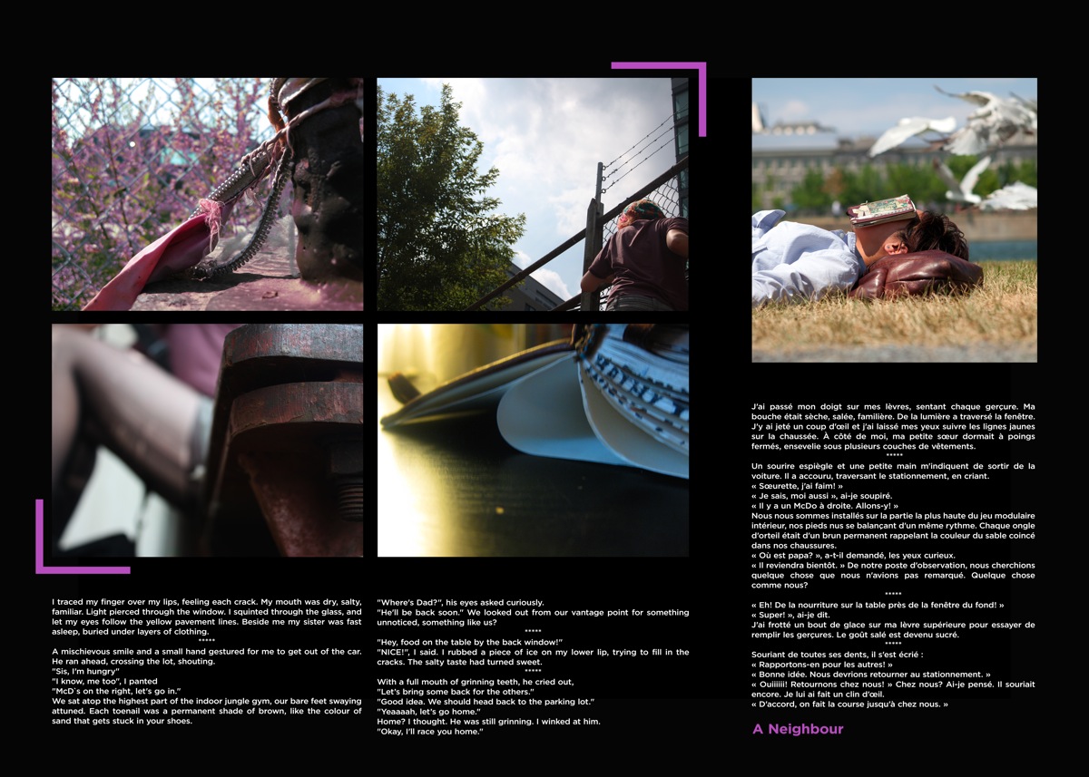 Rue-Elles/Urban Lifest♀ries was a workshop series with the YWCA and Mapping Memories. The series was directed towards women and girls with experience living in the street who developed stories and photographs over 2 workshops of 4 days each. The first week we worked primarily with women over 30 and the second week we worked with teenagers and young women under the age of 25. The workshops were held at the YWCA and at the headquarters of LOVE (Leave Out Violence), a youth violence prevention organization. With the resulting work we created an art installation that was up for five weeks on Pierce Street at the corner of St. Catherine Street West.